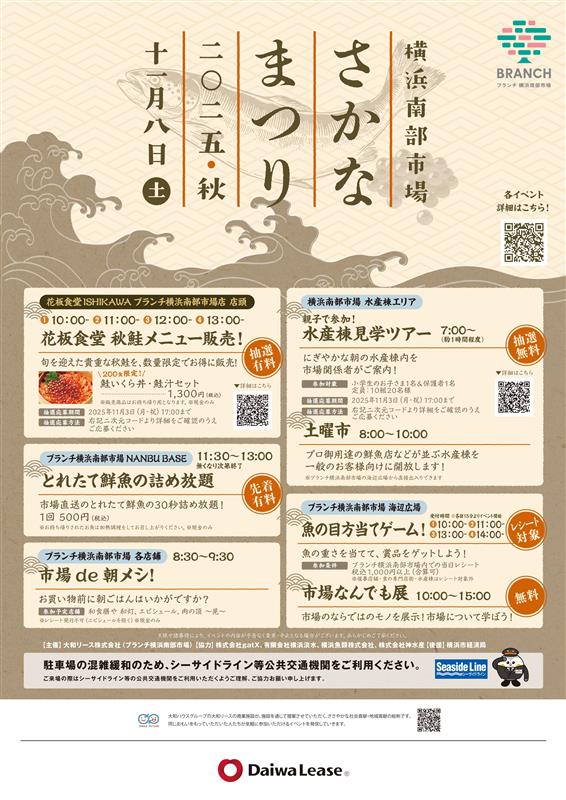 横浜南部市場では、土曜市と併せて「 さかなまつり 秋 」を開催します。 「とれたて鮮魚詰め放題」や「親子で参加!水産棟見学ツアー」など様々なイベントが行われます。 今年開催された 「さかなまつり 春」 「さかなまつり 夏」 には共に多数のお客様に 御来場をいただきました。 奮ってのご参加、ご来場をお待ちしております。